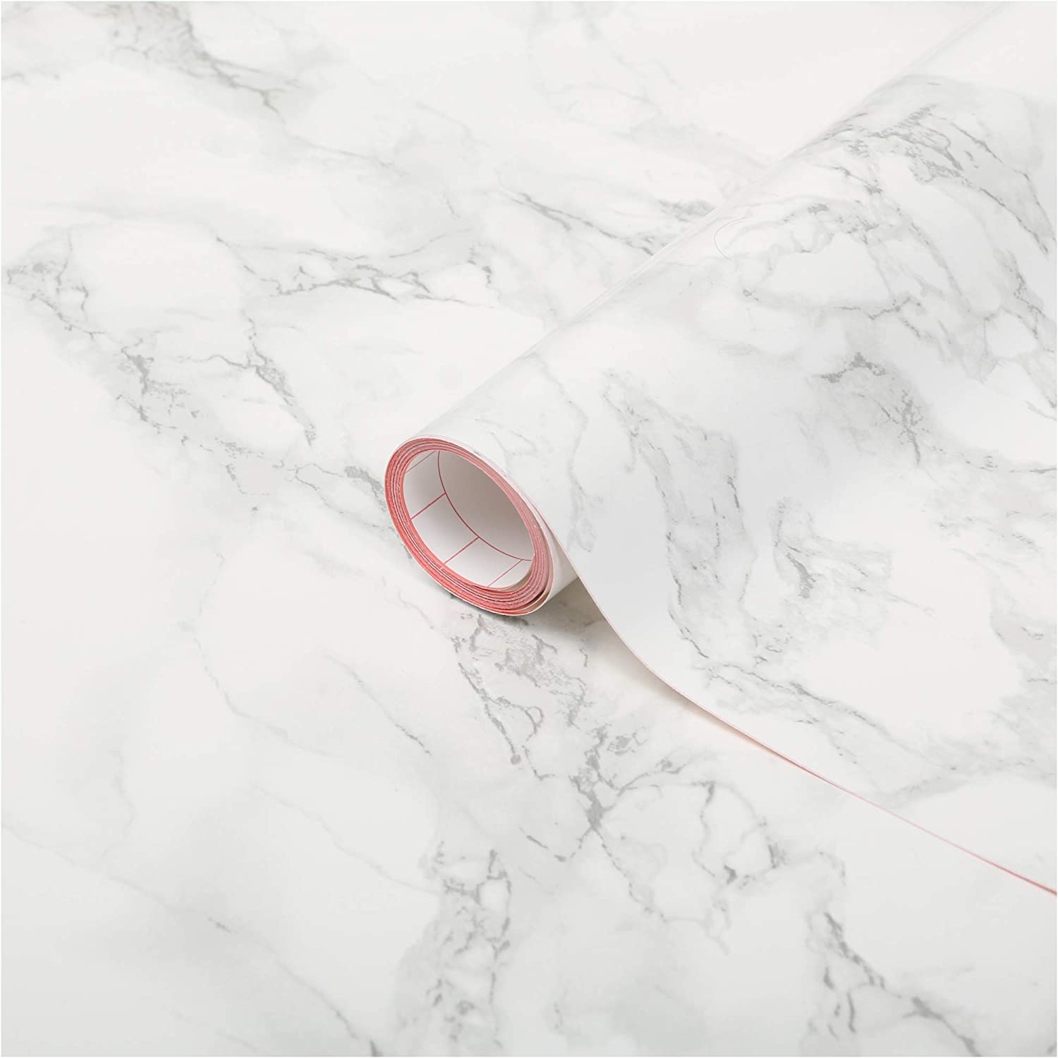 d-c-fix self-adhesive peel-and-stick waterproof marble grey is the perfect solution for upgrading their white marble countertop or lower cabinets.