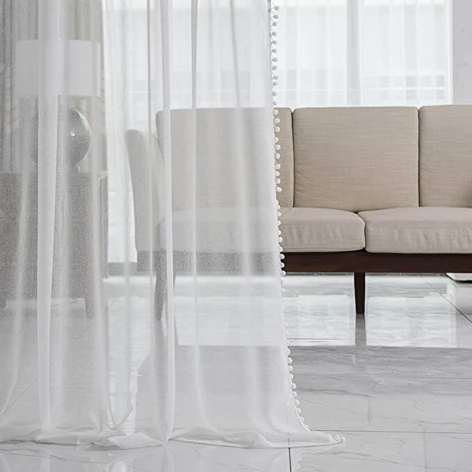 The lightweight polyester fabric is durable and the pom poms lining both sides of the sheer curtains create a stylish and trendy look.